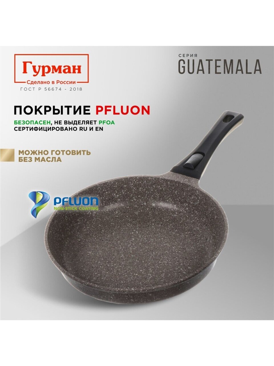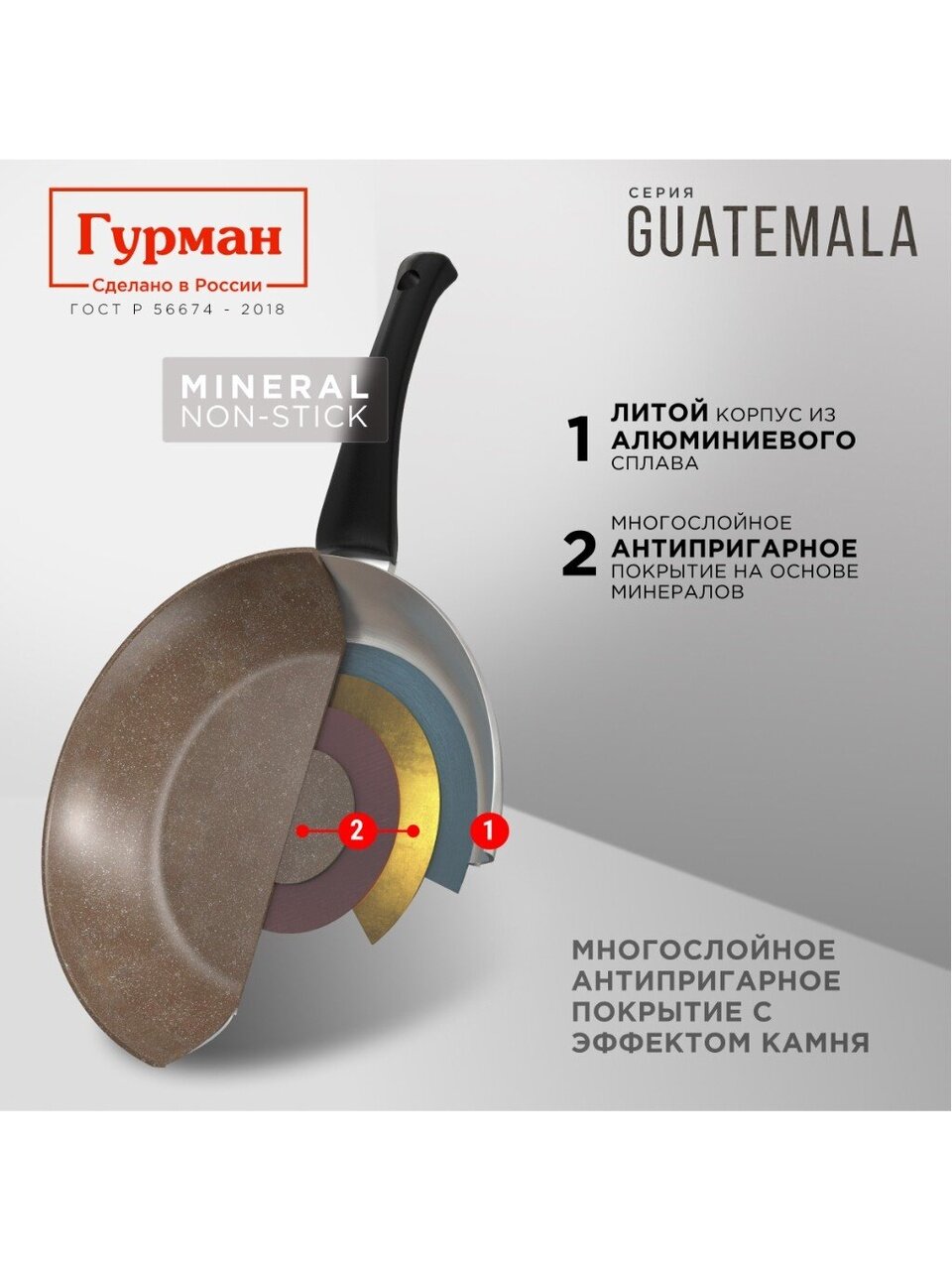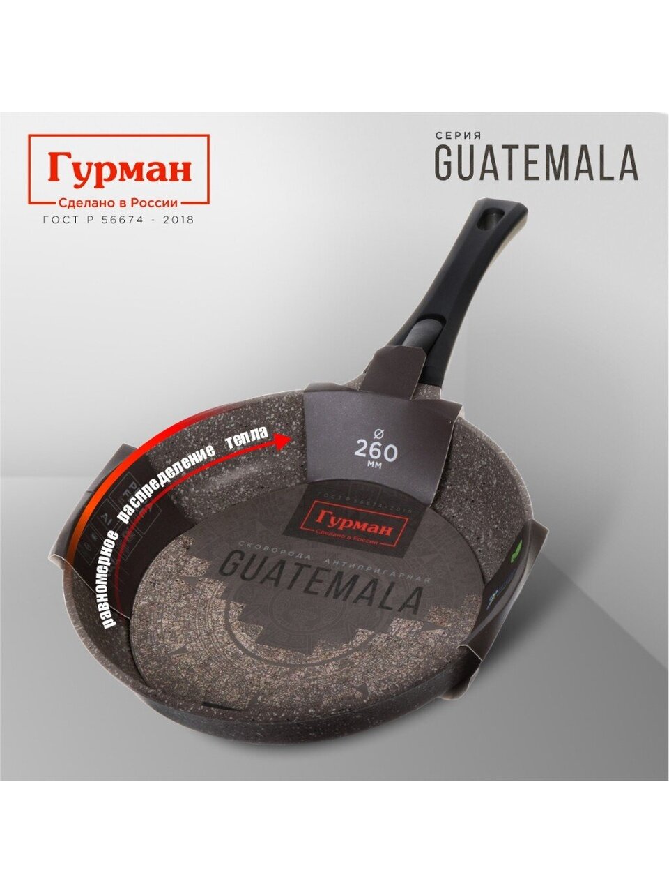 Подходит ли для индукционных плит? Эта сковорода рассчитана на газовые, электрические и стеклокерамические плиты, а также для духовки. Для индукции не подходит, что важно учитывать при выборе. Если вы ищете, какую сковороду купить недорого для дачи или дома — Guatemala от Гурман сочетает надежность, современный дизайн и практичность.