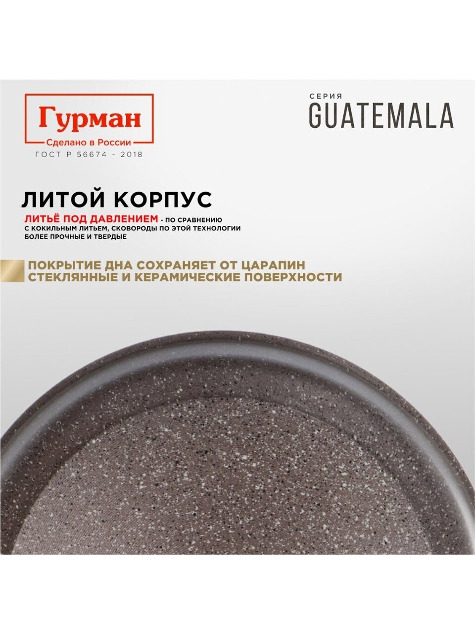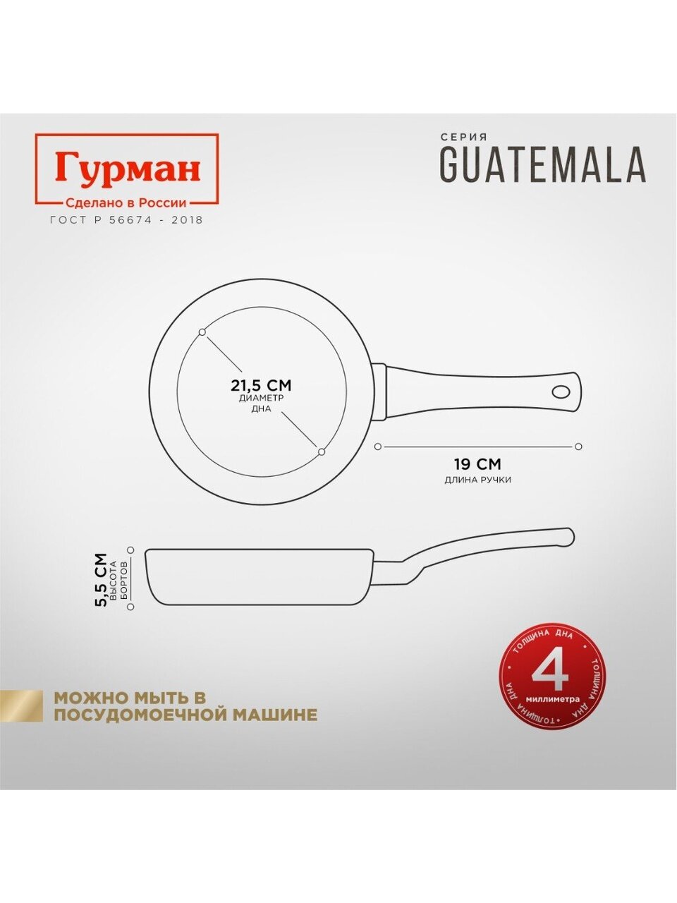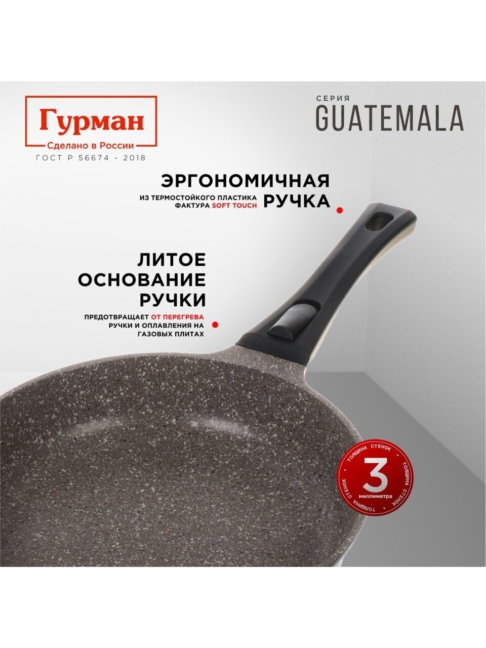 Подходит ли для индукционных плит? Эта сковорода рассчитана на газовые, электрические и стеклокерамические плиты, а также для духовки. Для индукции не подходит, что важно учитывать при выборе. Если вы ищете, какую сковороду купить недорого для дачи или дома — Guatemala от Гурман сочетает надежность, современный дизайн и практичность.