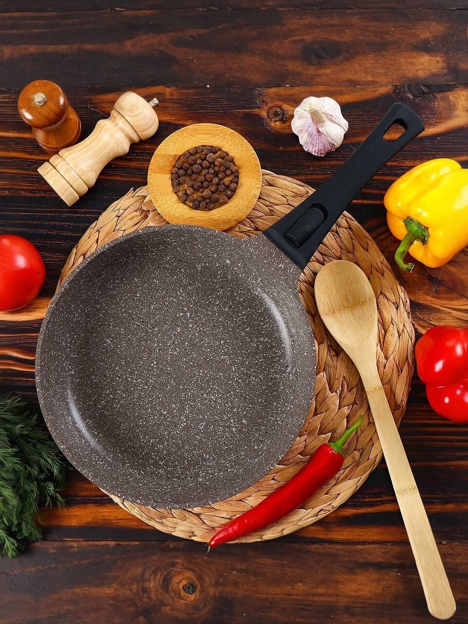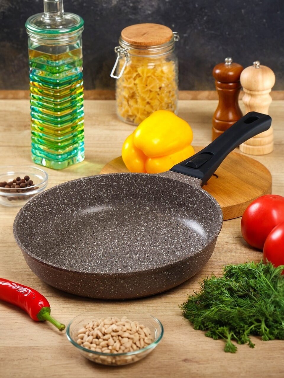 Чем отличается эта сковорода от обычных? В отличие от штампованных моделей, литой алюминий устойчив к деформации, а толщина дна 4 мм гарантирует стабильный результат даже при интенсивном использовании. Съемная ручка позволяет использовать сковороду в духовке и экономить место при хранении — отличный вариант для маленькой кухни или дачного домика. Можно мыть в посудомоечной машине без риска для покрытия.