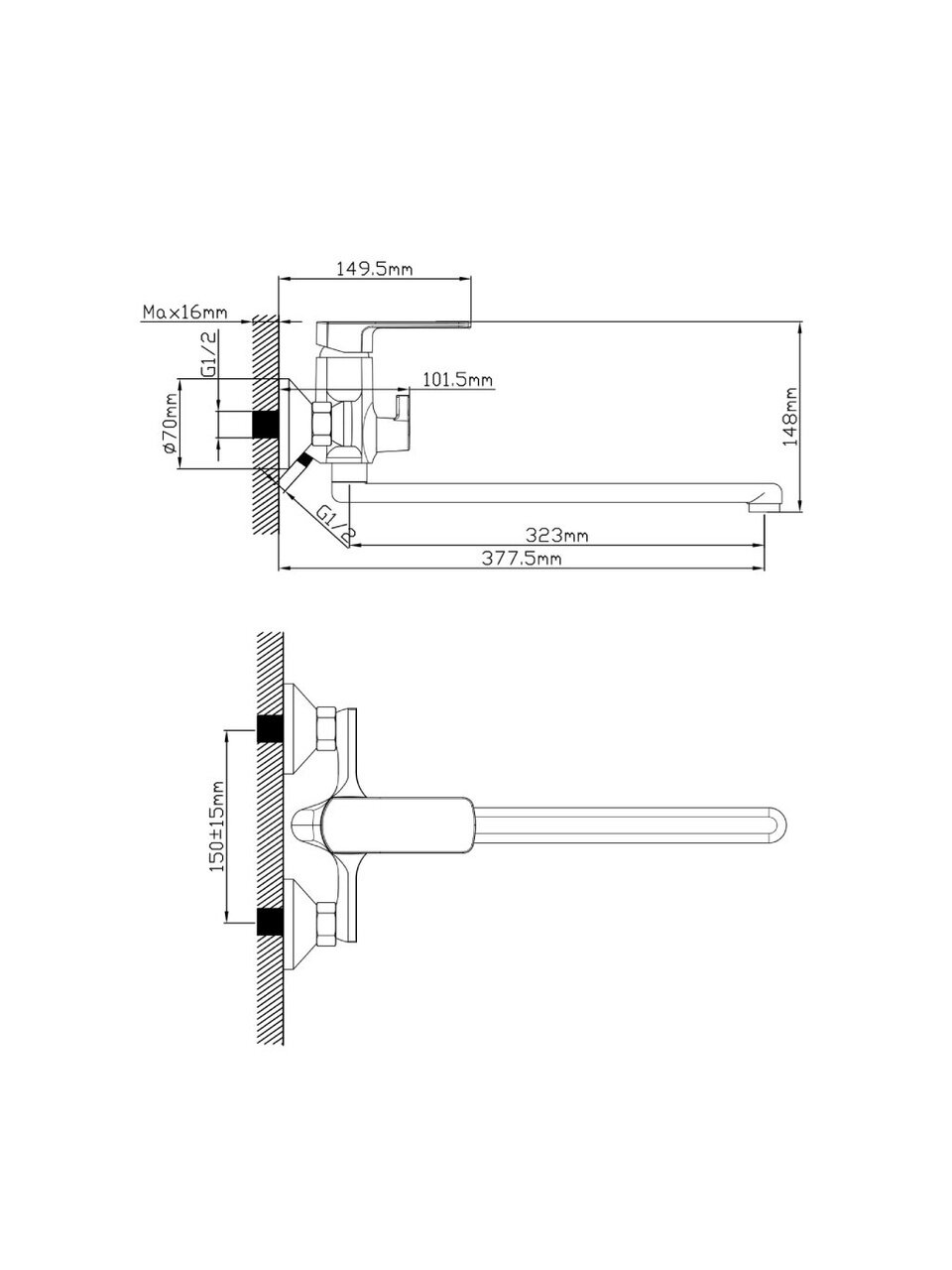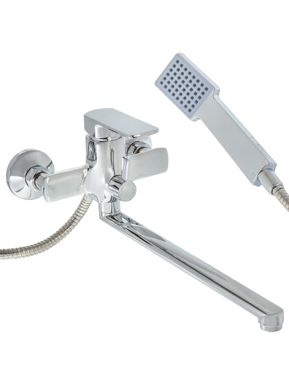Если вы ищете, что лучше для ванной с душем — обратите внимание на комплектацию: в наборе есть лейка, гибкая подводка, аэратор, что делает монтаж простым и быстрым. Смеситель устанавливается вертикально на стену (2 отверстия, межосевое расстояние 150 мм), стандартная подводка 1/2" подходит для большинства российских водопроводов. Как использовать смеситель с длинным изливом? Просто поверните его для наполнения ванны или переключите на душ — всё под рукой.
