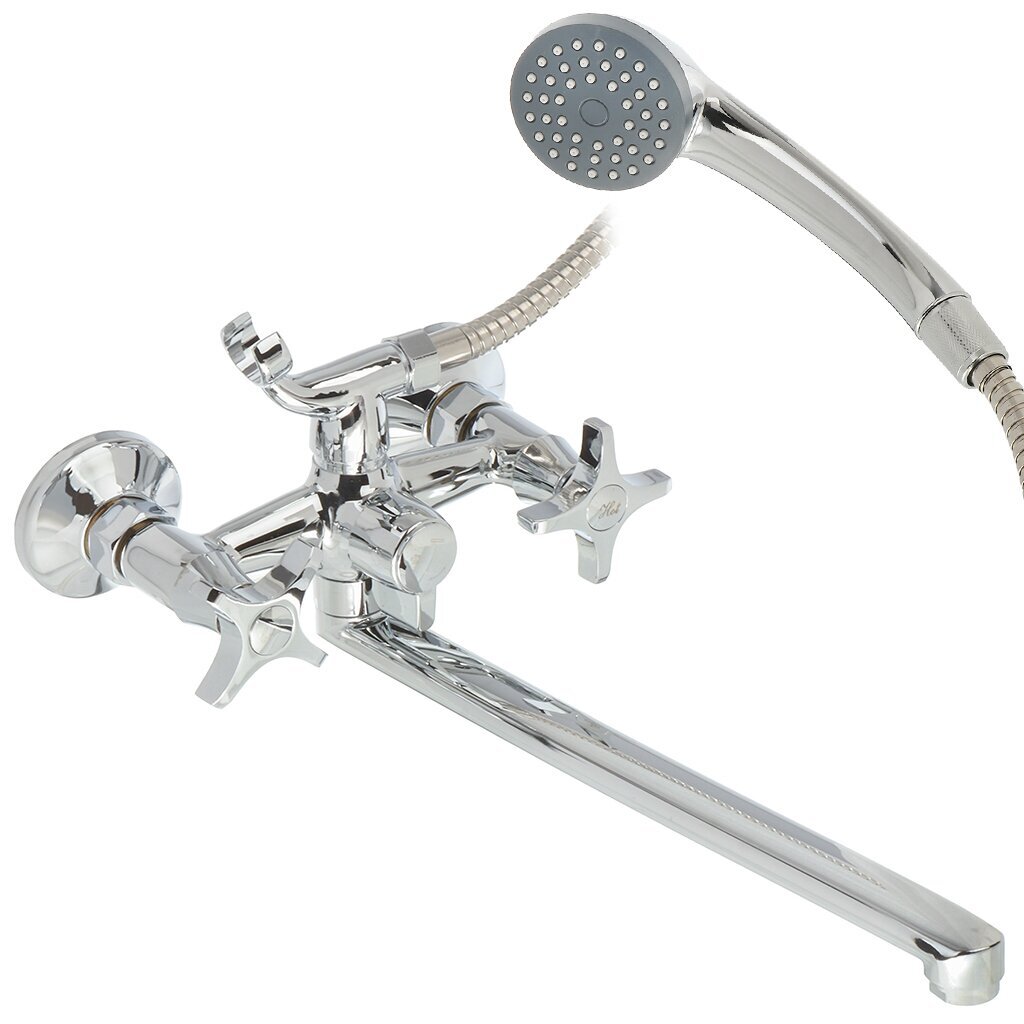 Смеситель для ванны Aqwin A22312 — долговечный хромированный корпус, плавное управление и душевой комплект для комфортного водоснабжения дома и на даче.