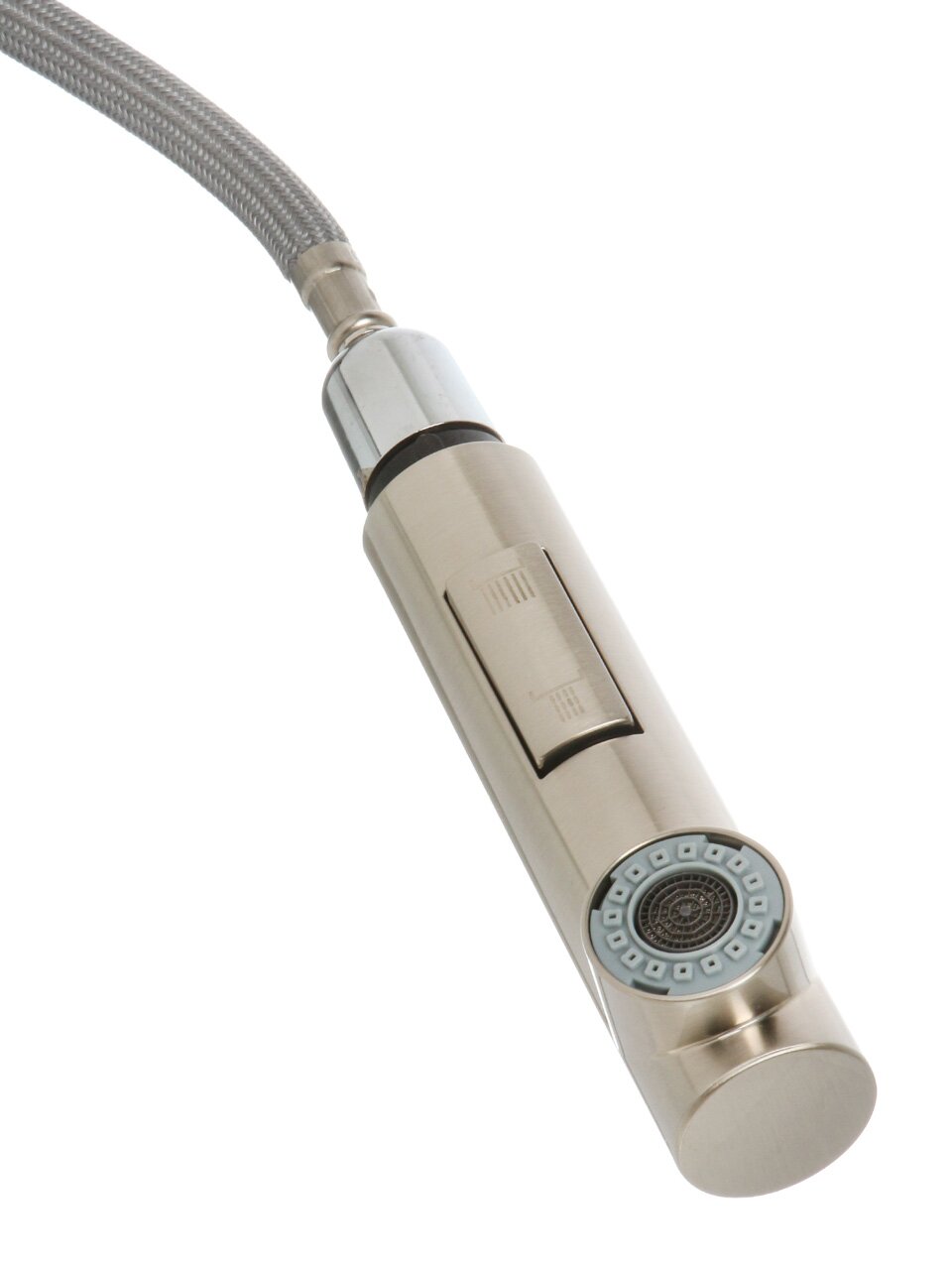 Корпус выполнен из нержавеющей стали с матовой сатиновой поверхностью, что обеспечивает долгий срок службы и устойчивость к ржавчине даже при постоянном контакте с водой.