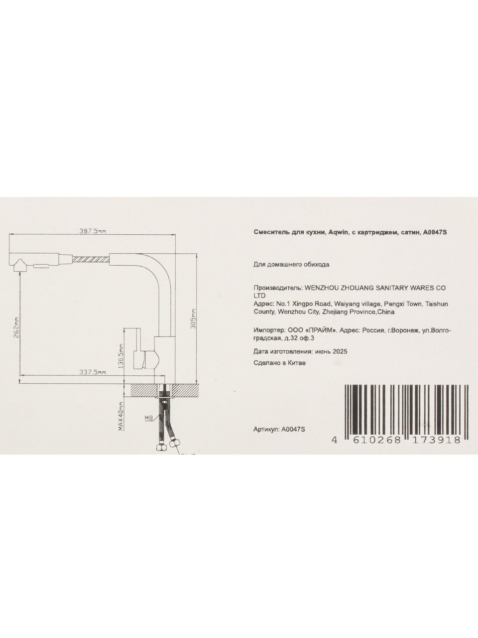 Вы можете приобрести «Смеситель для кухни, Aqwin, с картриджем, сатин, A0047S» и другие товары в нашем интернет-магазине в Ставрополе по низким ценам и с бесплатным самовывозом.