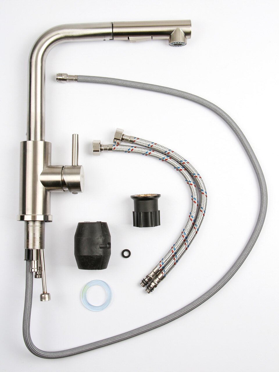 Смеситель для кухни Aqwin A0047S: долговечная нержавеющая сталь, экономия воды, стильный сатин — идеальный выбор для современной кухни