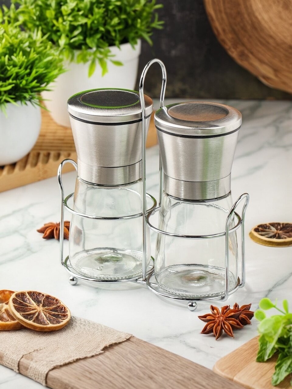 Вы можете приобрести «Набор для специй стекло, нержавеющая сталь, 2 шт, на подставке, серебро, Y4-8696» и другие товары в нашем интернет-магазине в Воронеже по низким ценам и с бесплатным самовывозом.
