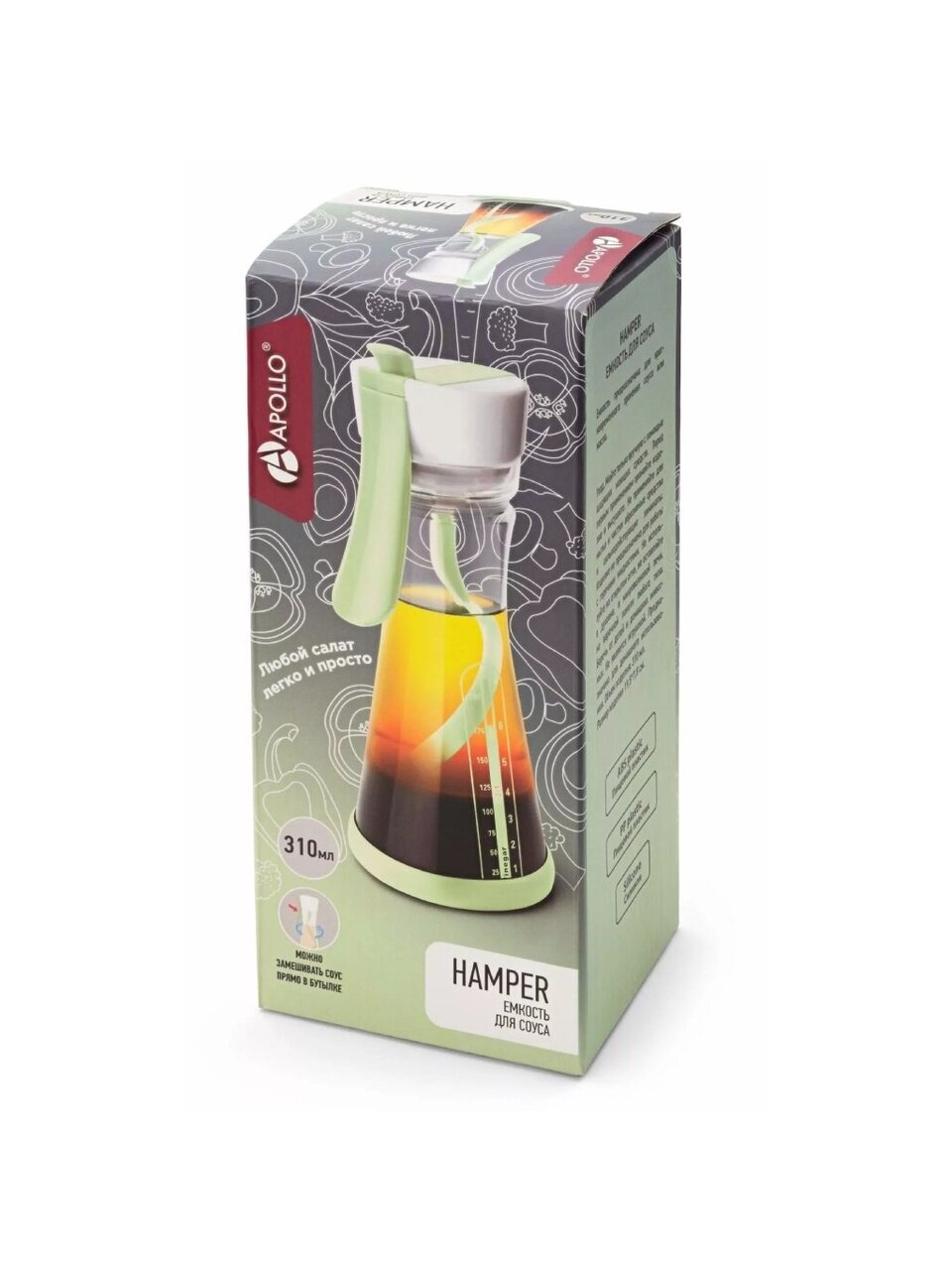 Емкость предназначена для приготовления и кратковременного хранения соуса или масла. Изделие оснащено узким носиком, который позволяет аккуратно добавить необходимое количество содержимого в блюдо, с помощью мерной шкалы очень удобно дозировать содержимое .Легко чистить и заправлять-широкое отверстие обеспечивает быструю и простую очистку и заправку.