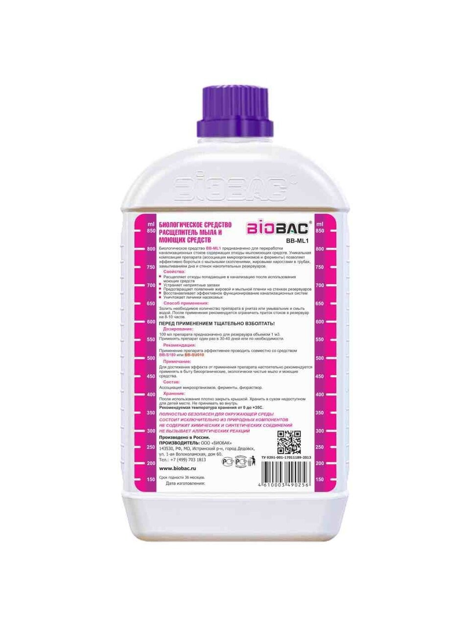 - Биологическое средство BB-ML1 предназначено для переработки канализационных стоков содержащих отходы мыломоющих средств.