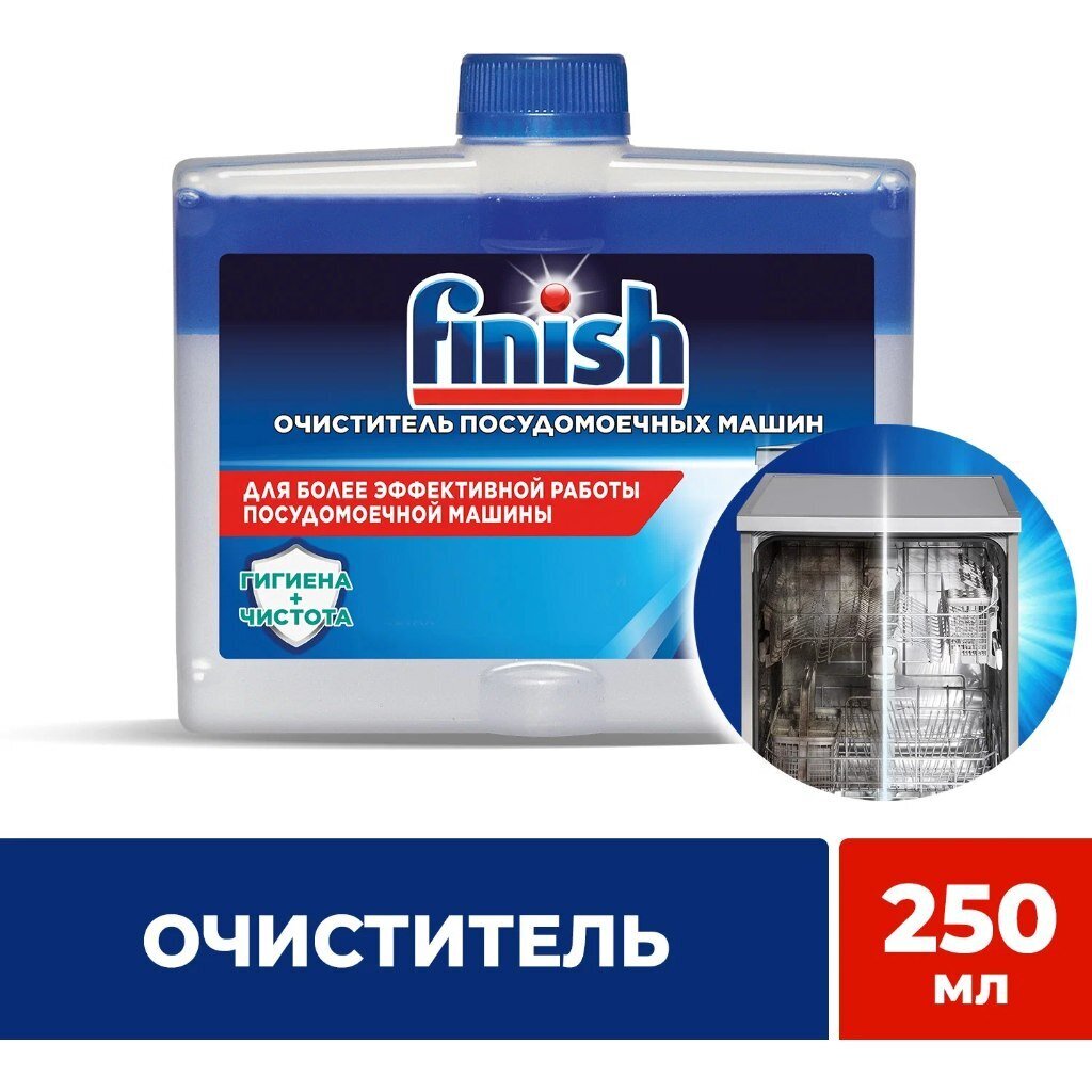 Очиститель для посудомоечных машин Finish удаляет жир и известковый налёт, который скапливается на поверхности внутренних деталей, что оказывает влияние на качество мытья столовых приборов.