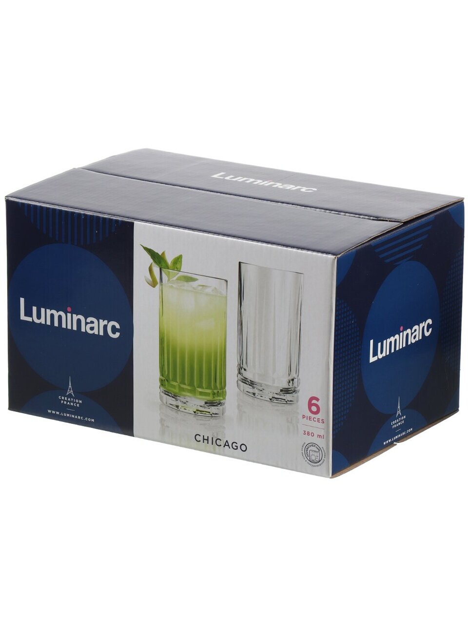 Стаканы Luminarc Чикаго 380 мл — набор из 6 высоких стеклянных стаканов для воды и коктейлей. Идеальный выбор для дома, дачи или стильного подарка.