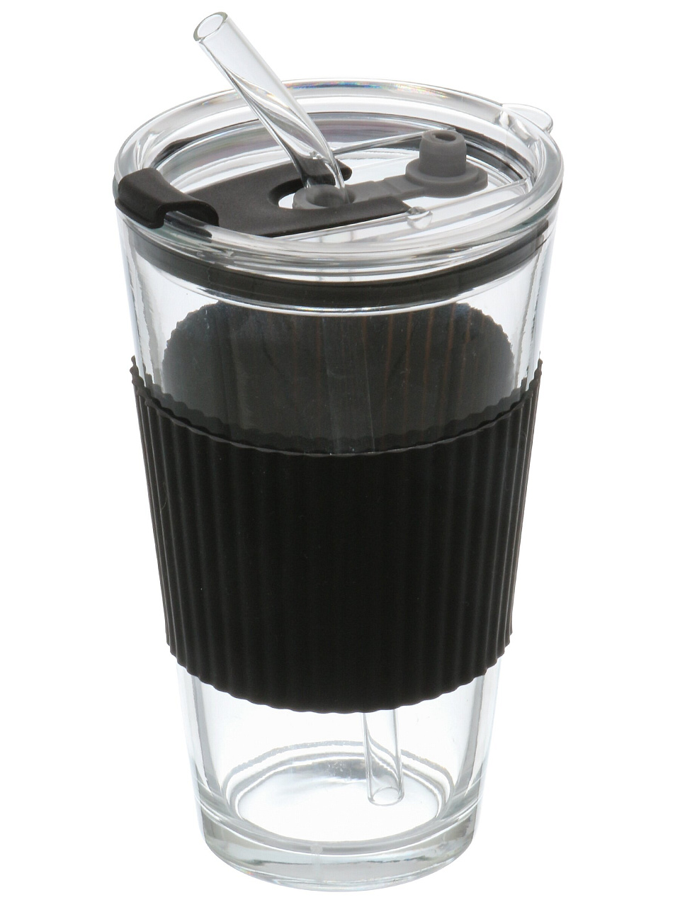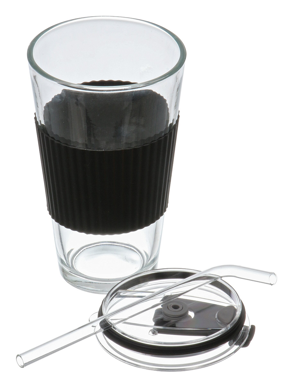 В наборе 1 стакан объёмом 450 мл, материал — стекло, тип — универсальный стакан с трубочкой.
