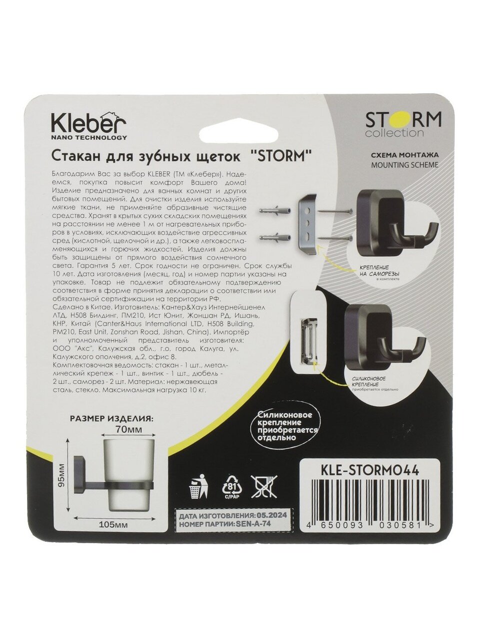 Покупка стакана для зубных щеток KLE-STORM044 — это инвестиция в комфорт и стиль вашей ванной комнаты. Этот аксессуар не только упрощает организацию пространства, но и добавляет нотку современного дизайна. Выбирая его, вы получаете качественное изделие, которое прослужит долгие годы, радуя своим внешним видом и функциональностью. Сделайте свою ванную комнату более уютной и организованной с этим стильным аксессуаром!