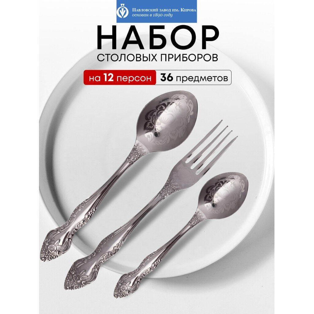 В отличие от изделий с пластиковыми или простыми металлическими ручками, этот набор выделяется фигурными металлическими ручками и серебристым покрытием, что подчеркивает статус сервировки. Для тех, кто спрашивает, подходит ли набор для мытья в посудомоечной машине, — да, все 36 предметов рассчитаны на интенсивную эксплуатацию без потери блеска. Такой комплект часто выбирают для подарка на 8 марта, юбилей, новоселье или как практичный вариант для дачи.