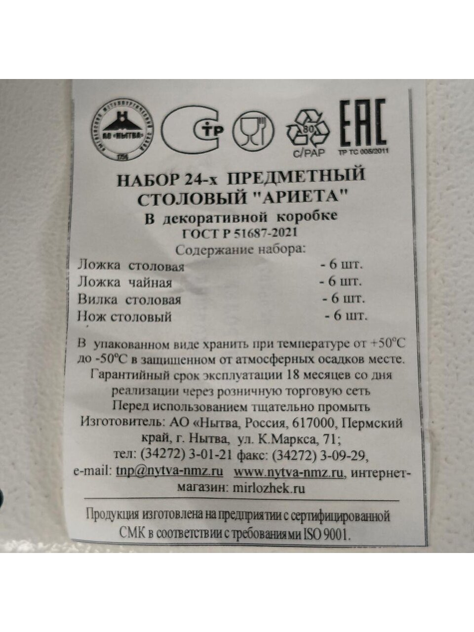 Набор столовых приборов Добросталь/Нытва Ариета 24 предмета: идеальный подарок в стильной упаковке для сервировки на 6 персон. Прочность, долговечность, забота о деталях.