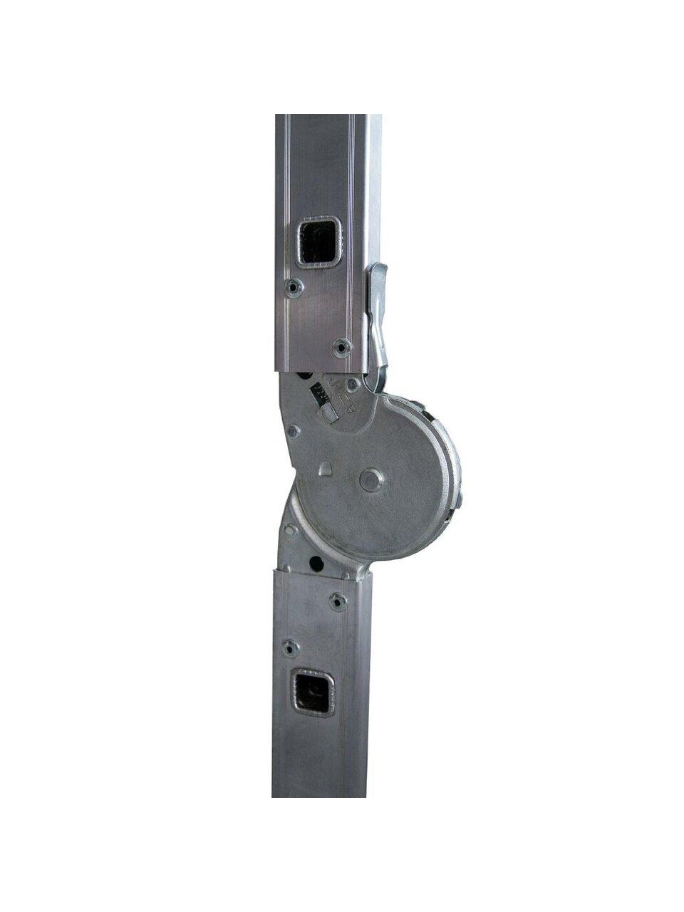 - Шарнирное стальное соединение повышенной прочности. Даёт возможность принимать разные позиции и надёжно фиксировать лестницу.