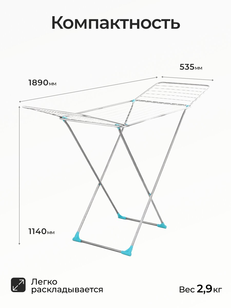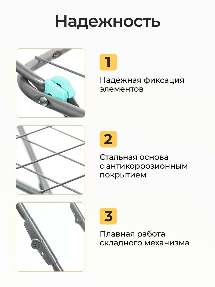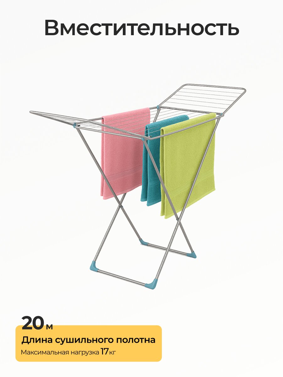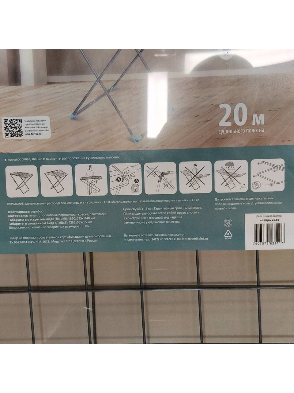 Вы можете приобрести «Сушилка для белья напольная, полотно 20 м, 189х53.5х114 см, складная, 22 прута, 17 кг, серебряная, Nika, СБ2» и другие товары в нашем интернет-магазине в Орле по низким ценам и с бесплатным самовывозом.