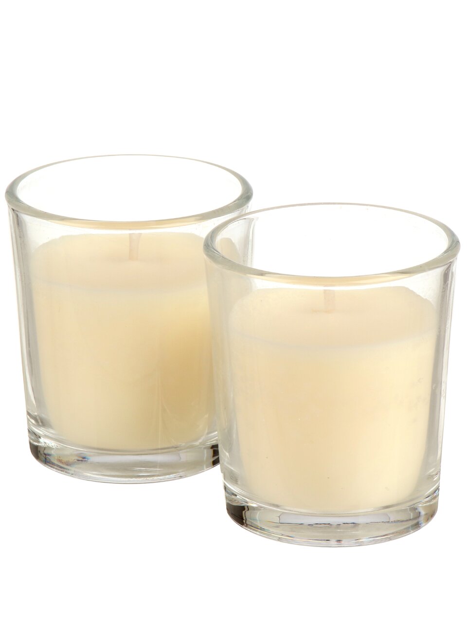 Каждая свеча — 6,6×5,8 см, время горения — до 12 часов. Стеклянный стакан защищает поверхность и продлевает срок службы свечи.