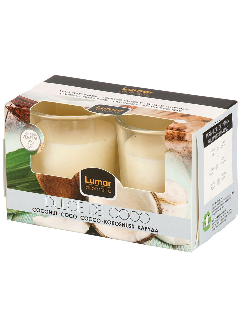 Ароматизированные свечи Lumar с кокосовым ароматом — набор из 2 стильных стаканов 6,6×5,8 см для уюта, подарка и расслабления дома или на даче.