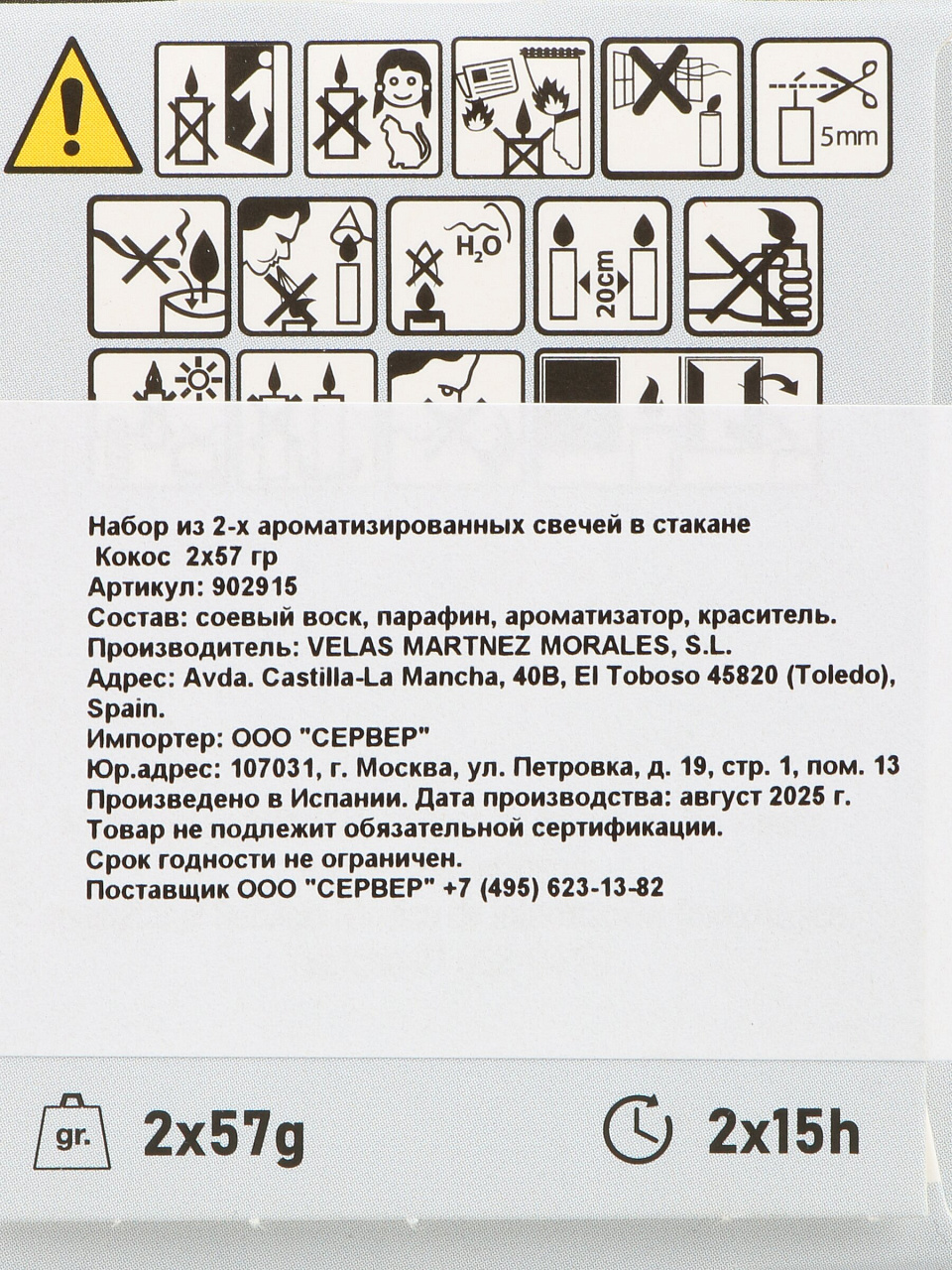 Вы можете приобрести «Набор свечей в стакане, 2 шт, Lumar, Кокос, ароматизированные, 2х6.6х5.8 см, 902915» и другие товары в нашем интернет-магазине в Твери по низким ценам и с бесплатным самовывозом.