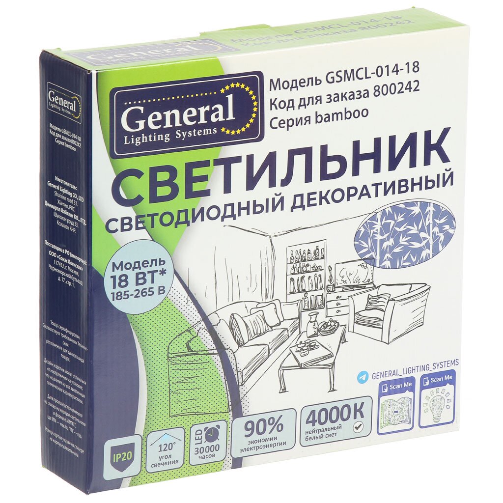 Светодиодный потолочный светильник General 18 Вт, 4000 К Bamboo — экономичное решение для стильного освещения дома и офиса. Надёжность, современный дизайн, срок службы 30 000 часов.