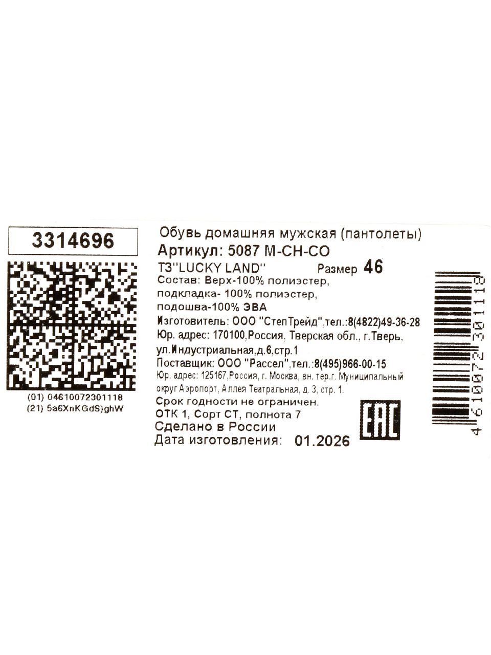 Закажите мужские тапки Lucky Land 46 размера — получите надёжную обувь для дома и дачи по выгодной цене. Гарантия качества и быстрая доставка!