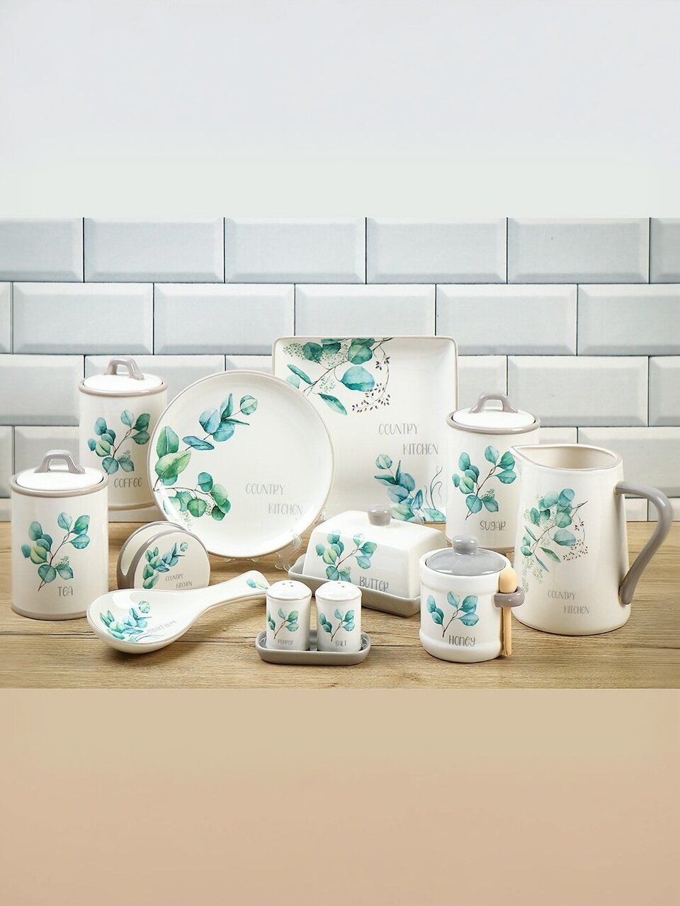 - Эффектный дизайн с растительным орнаментом и надписями — выделяется на любом столе