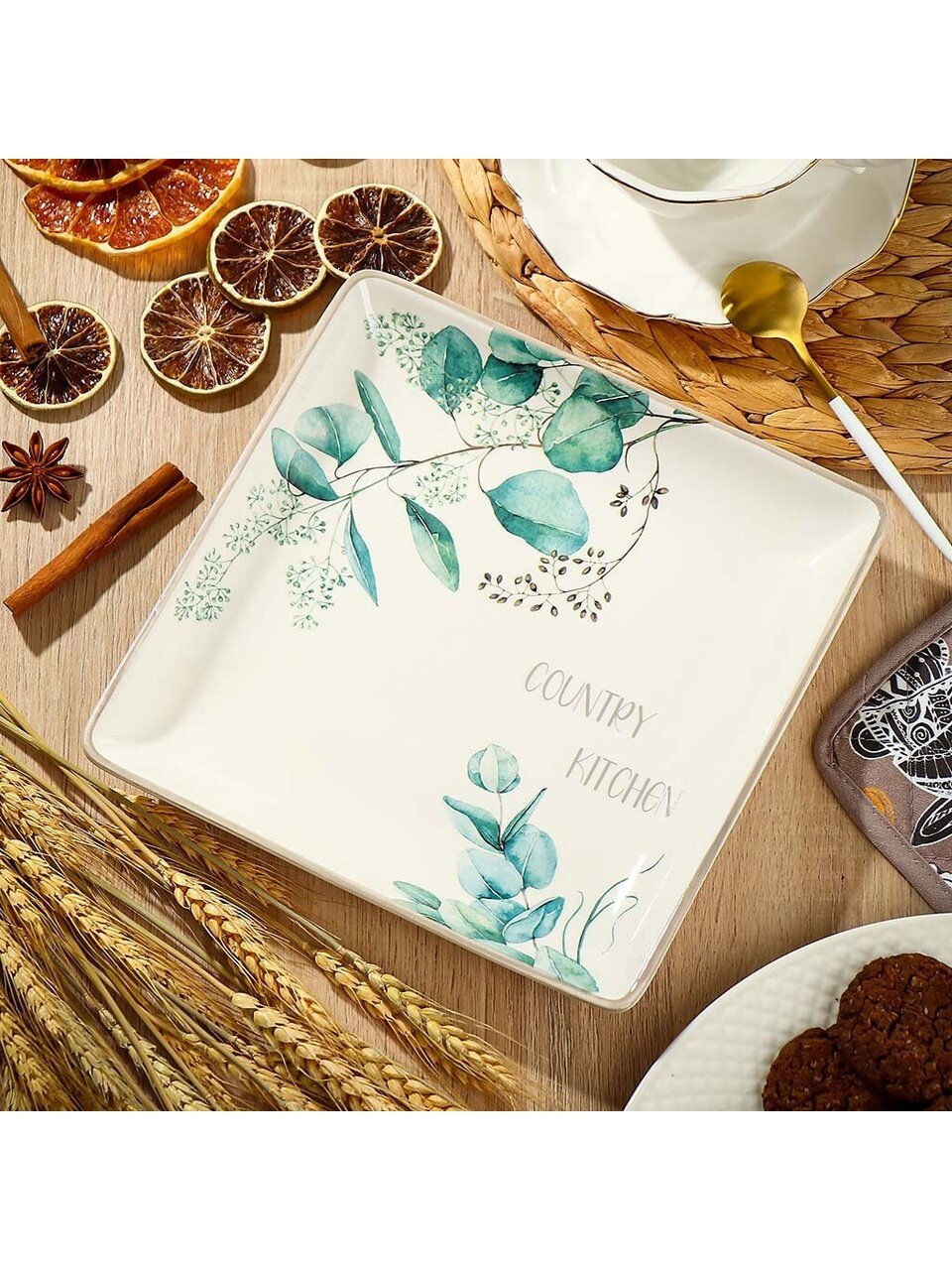 Тарелка обеденная Daniks Вилладжио 21 см: стильный квадрат для сервировки, устойчивый доломит, универсальный выбор для дома и дачи.