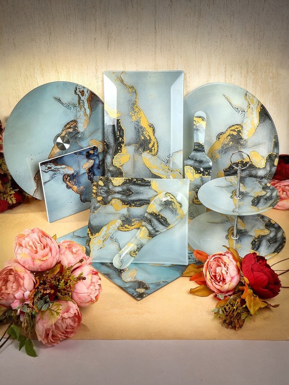 - Абстрактный рисунок под мрамор — эксклюзивный дизайн для эффектной подачи десертов и закусок