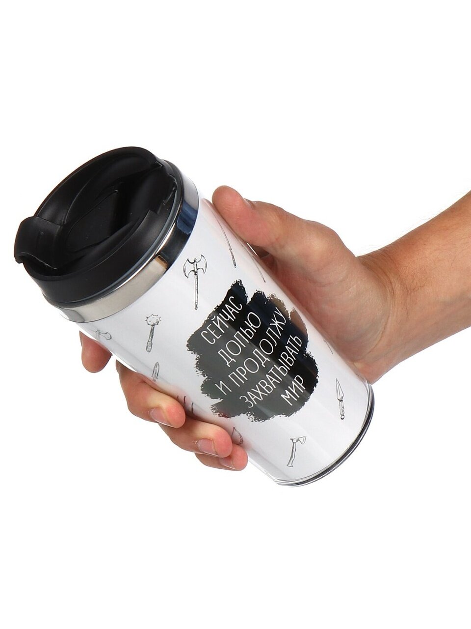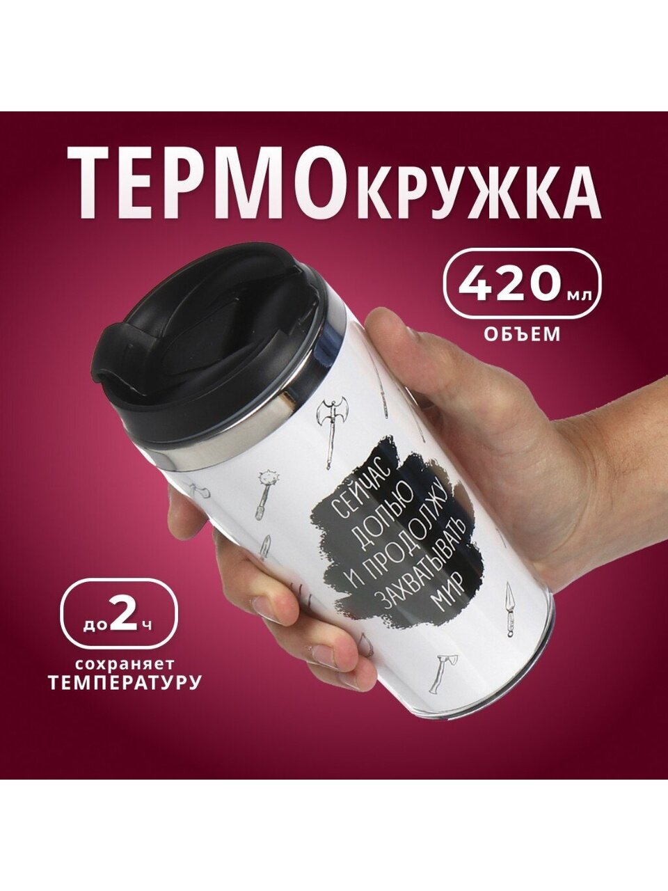 Термокружка Daniks «Захватывать мир», 0.42 л — стильное решение для города и авто. Двойная сталь, удобство, тепло и холод до 2 часов. Идеально для подарка!