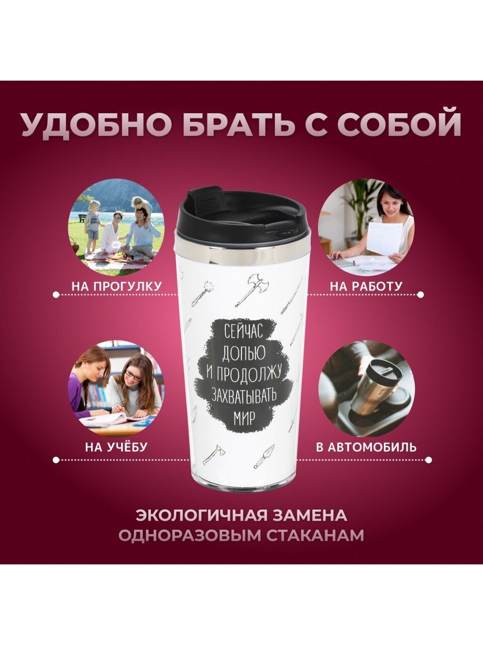Выбирайте термокружку Daniks «Захватывать мир» и получайте удовольствие от любимых напитков в дороге.