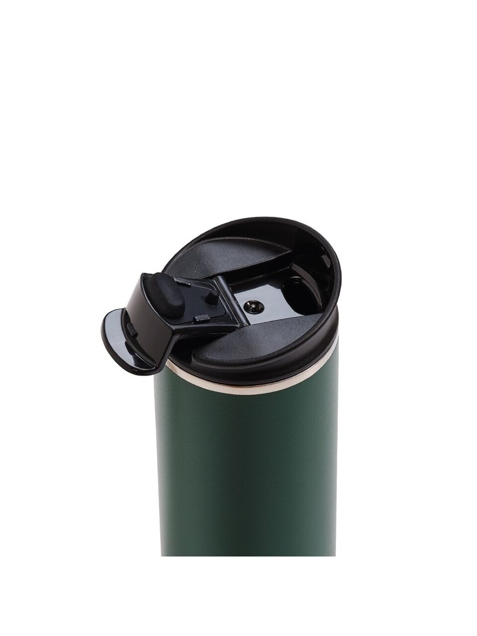Объём — 0.48 л (округлённо 0.5 л), высота — 21.7 см, диаметр горлышка — 5.8 см, материал корпуса и колбы — нержавеющая сталь, цвет — зелёный.