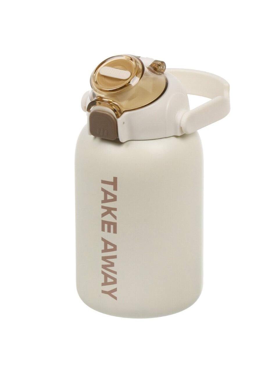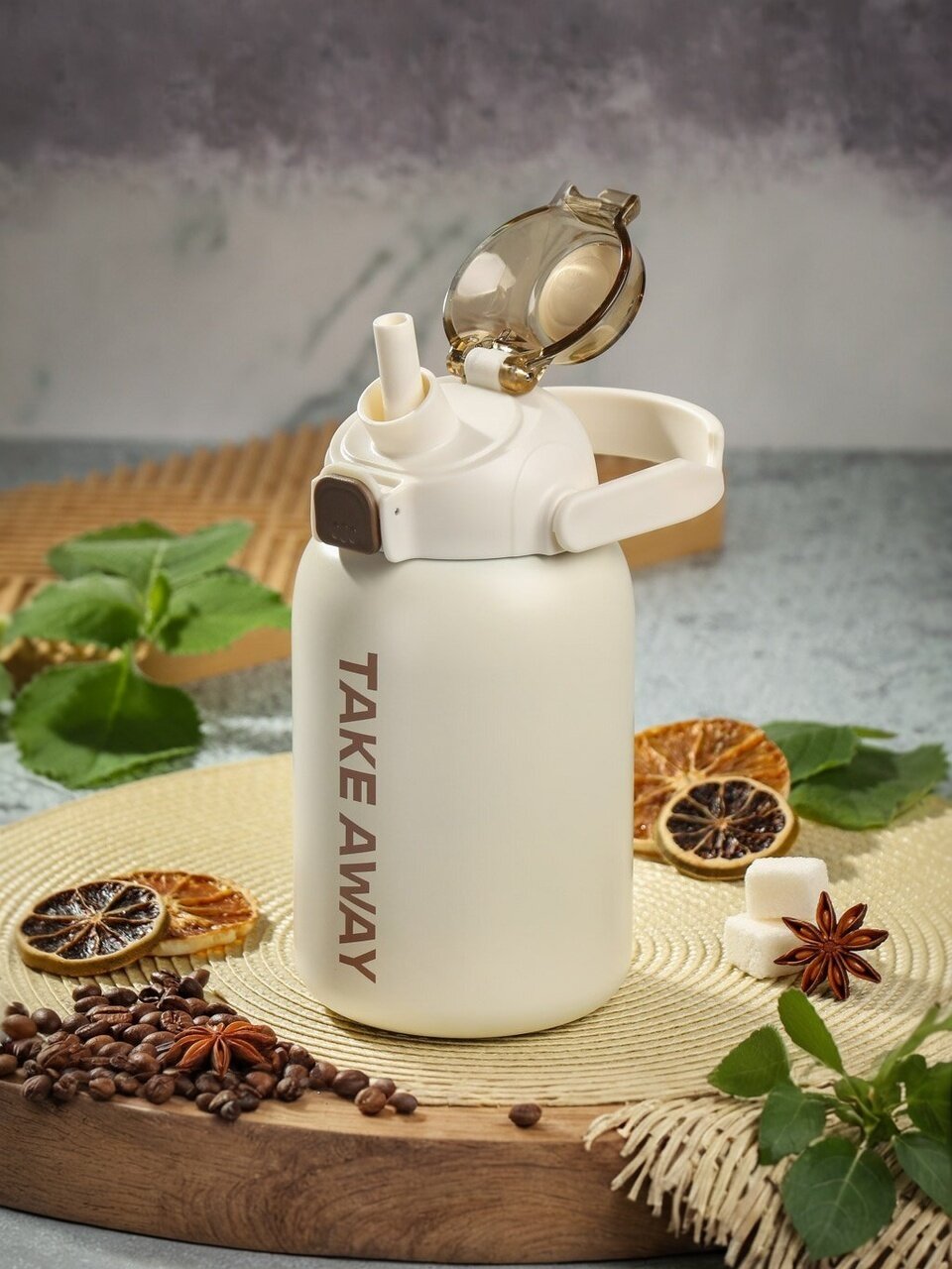 Термобутылка из нержавеющей стали 0.85 л с трубочкой и защелкой — держит тепло и холод до 8 часов, стильный белый дизайн для города и путешествий.