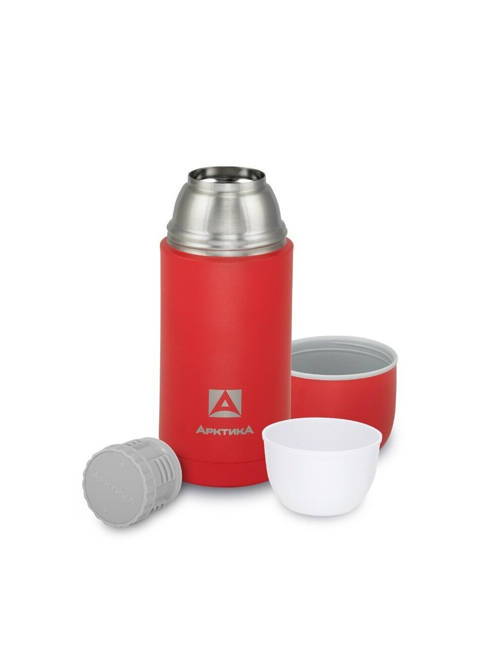 Термос Арктика 0.75 л с узкой горловиной — сохраняет тепло до 26 часов, стильный красный дизайн, идеален для города, дачи и путешествий