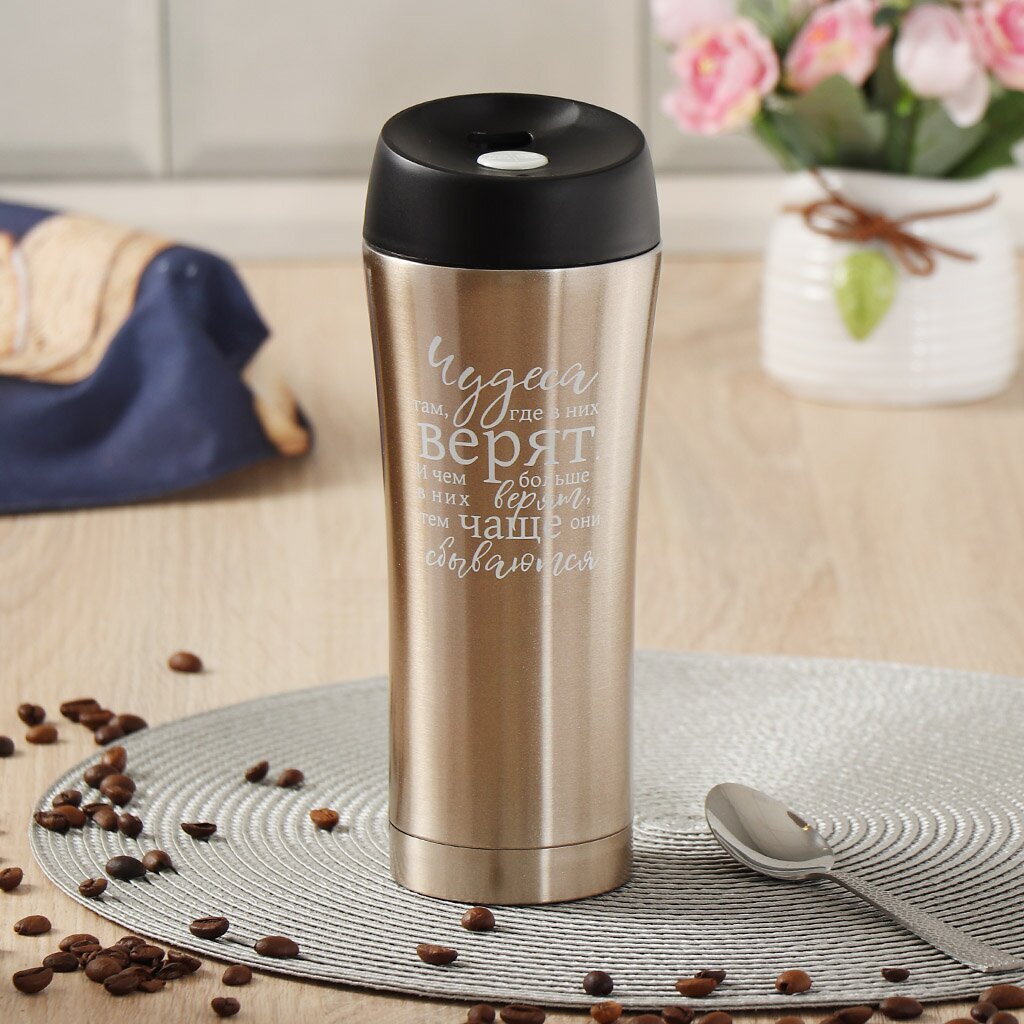 Термокружка Daniks 0.45 л: стильный женский аксессуар из нержавеющей стали для города, дома и автомобиля. Держит тепло до 2 часов — идеальный подарок и решение для кофе на ходу.