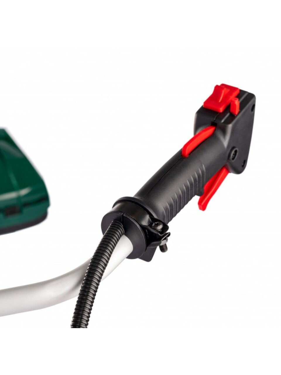- Для надежного хвата инструмент оснащен U-образной ручкой с эргономичными противоскользящими накладками.