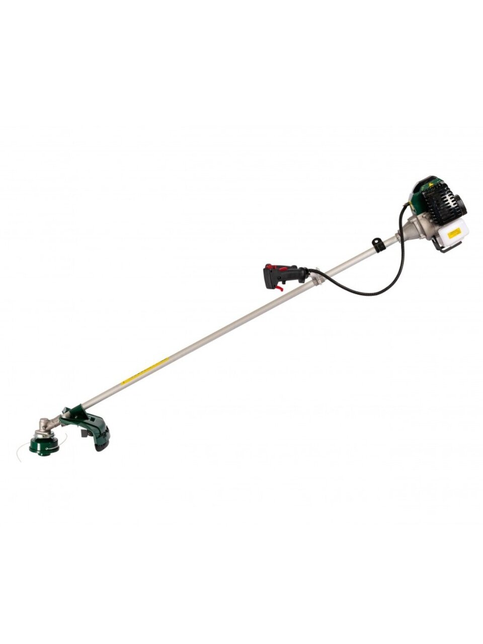 - Бензиновый триммер имеет разборную штангу, благодаря чему не занимает при хранении много места.