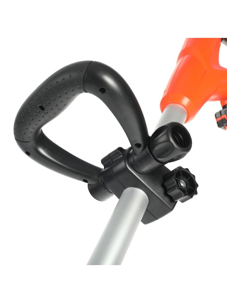- Телескопическая ручка, регулировка угла и положения рукоятки и двигателя – вы сможете настроить триммер под свой рост;
