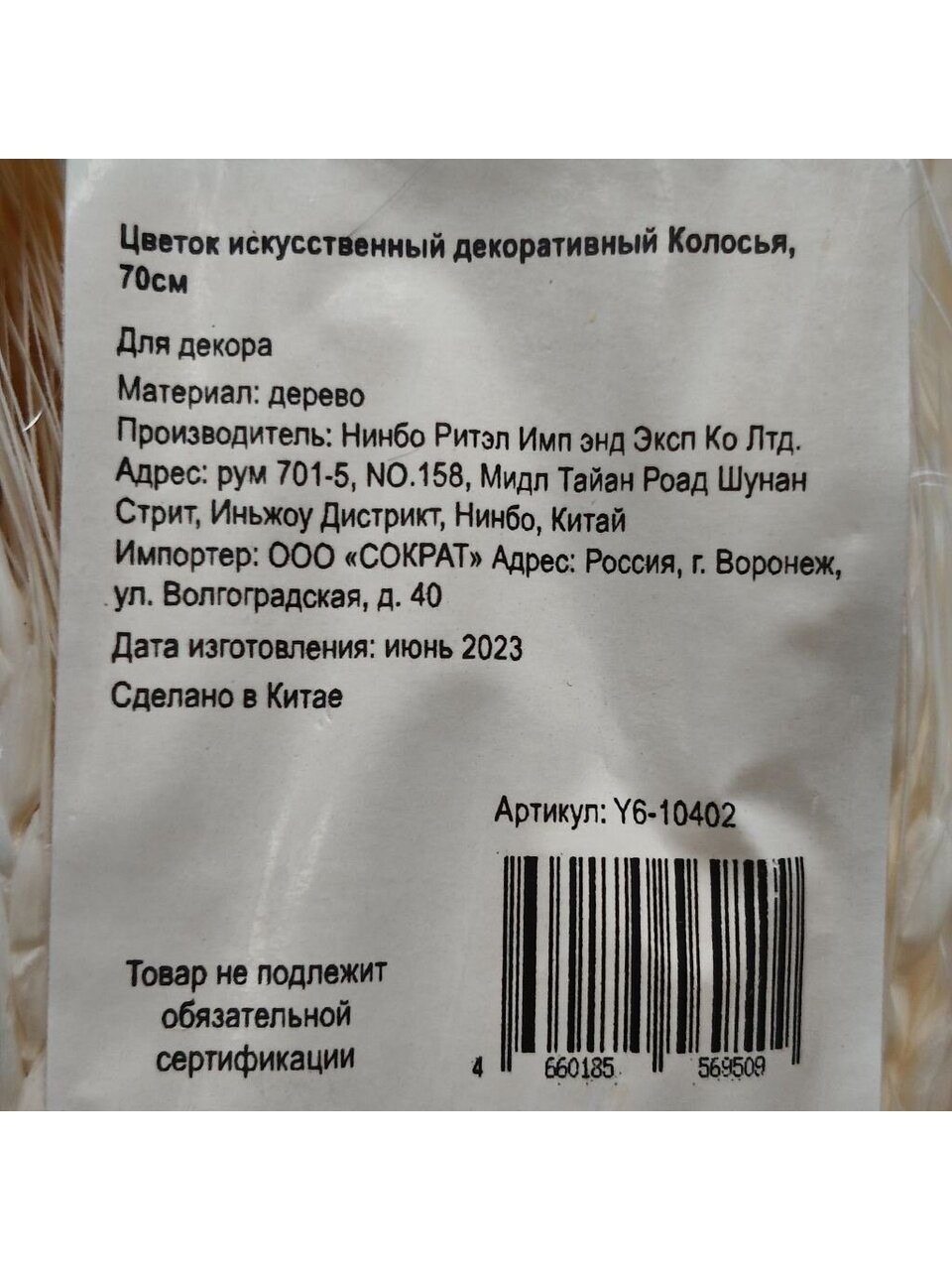 Вы можете приобрести «Цветок искусственный декоративный Колосья, 70 см, песочный, Y6-10402» и другие товары в нашем интернет-магазине в Ельце по низким ценам и с бесплатным самовывозом.