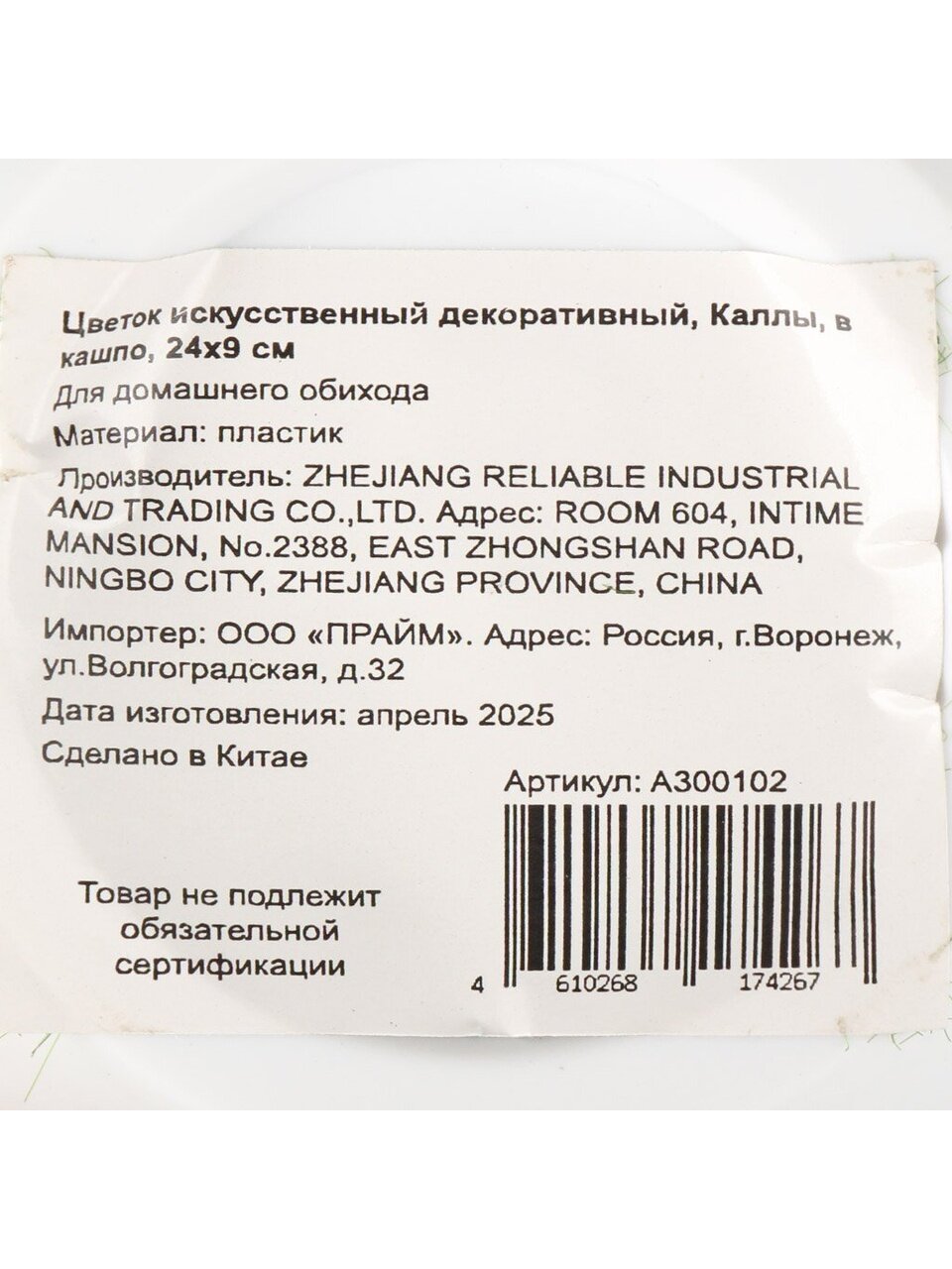 Вы можете приобрести «Цветок искусственный декоративный Каллы, в кашпо, 24х9 см, A300102» и другие товары в нашем интернет-магазине в Ельце по низким ценам и с бесплатным самовывозом.