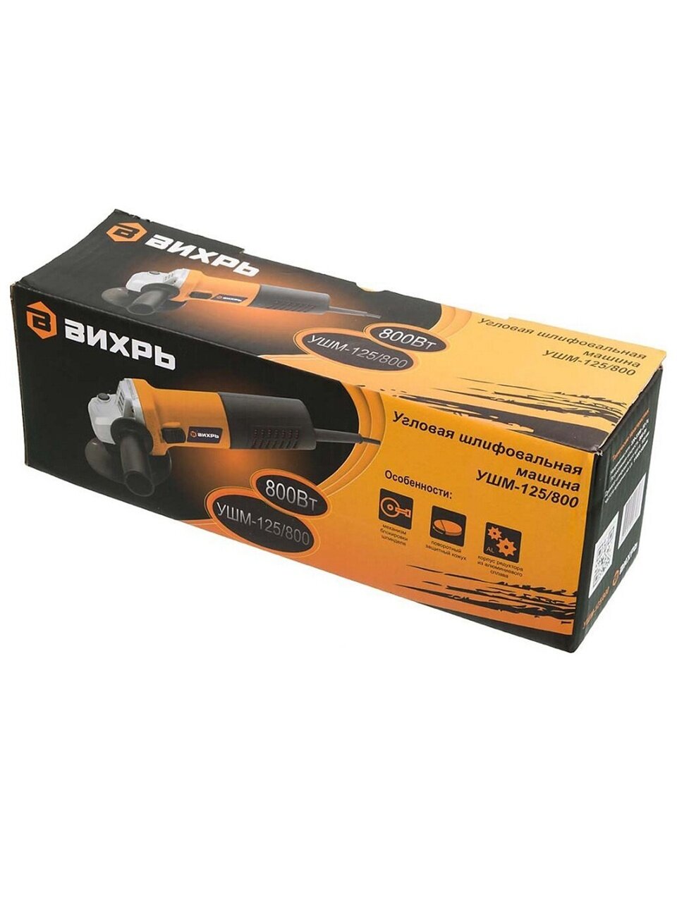Углошлифовальная машина (болгарка) ВИХРЬ УШМ-125/800 используется для зачистки, шлифования поверхности, резки материала. Укомплектована электрическим двигателем мощностью 0.8 кВт для надежной производительной работы. Вытянутый корпус обеспечивает более удобное удержание инструмента во время работы. Удобный ползунковый выключатель. Дополнительная боковая рукоятка с возможностью фиксации в двух положениях. Металлический корпус редуктора и качественные комплектующие позволяют увеличить срок эксплуатации инструмента. На корпусе находятся вентиляционные отверстия для защиты рабочего механизма от перегрева. Для быстрой и безопасной замены рабочей оснастки предусмотрена кнопка блокировки шпинделя.
