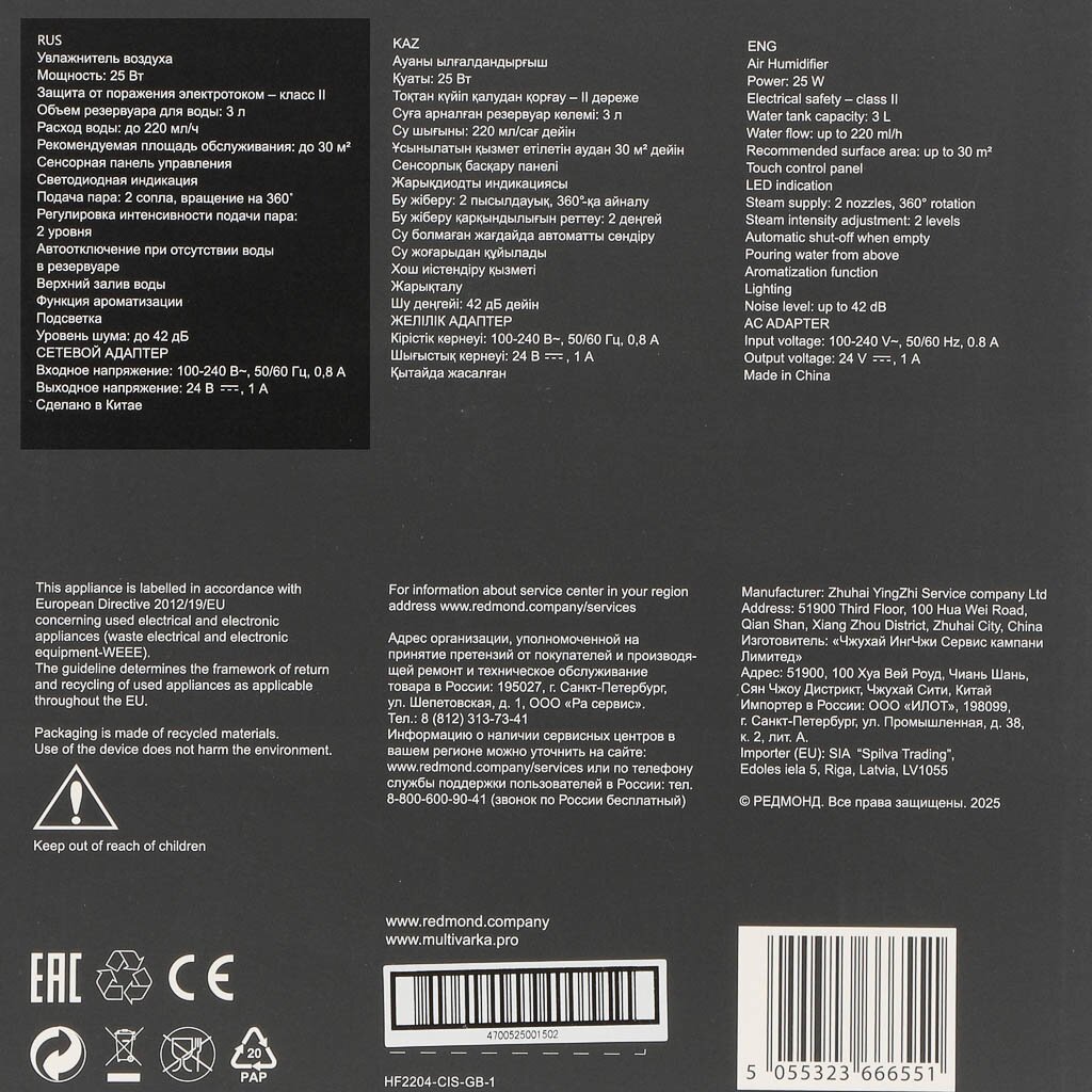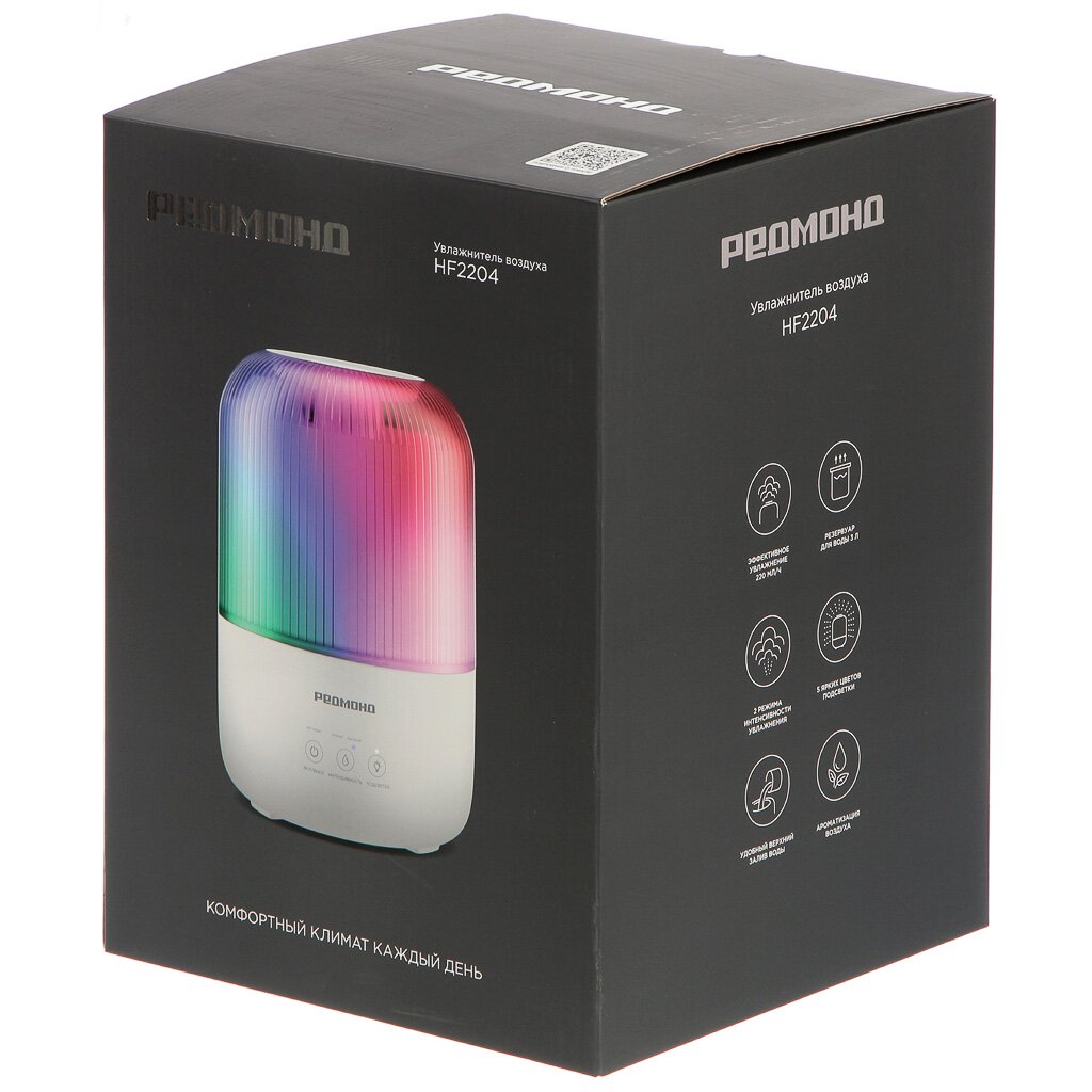 Увлажнитель воздуха Редмонд HF2204: свежий микроклимат для дома и офиса до 30 м², сенсорное управление, 3 л резервуар, тихая работа, стильный дизайн.