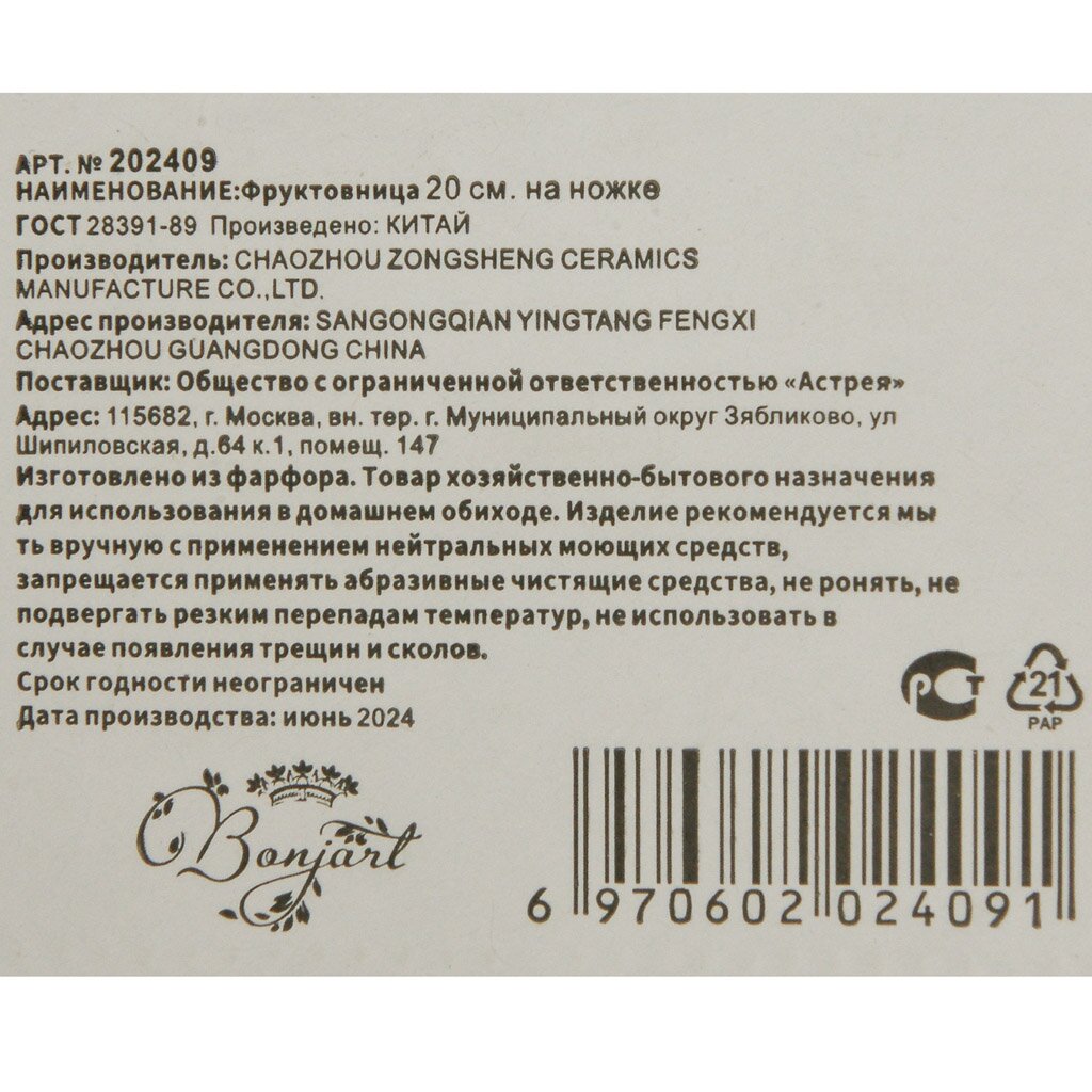 Ваза для фруктов, фарфор, на ножке, 14х20 см, Bonjart, 202409