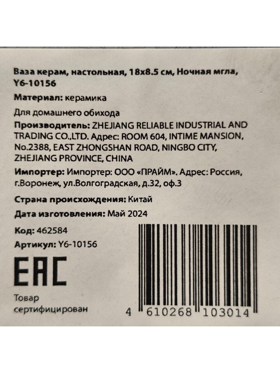 Вы можете приобрести «Ваза керамика, настольная, 18х8.5 см, Ночная мгла, Y6-10156» и другие товары в нашем интернет-магазине в Нижнем Новгороде по низким ценам и с бесплатным самовывозом.