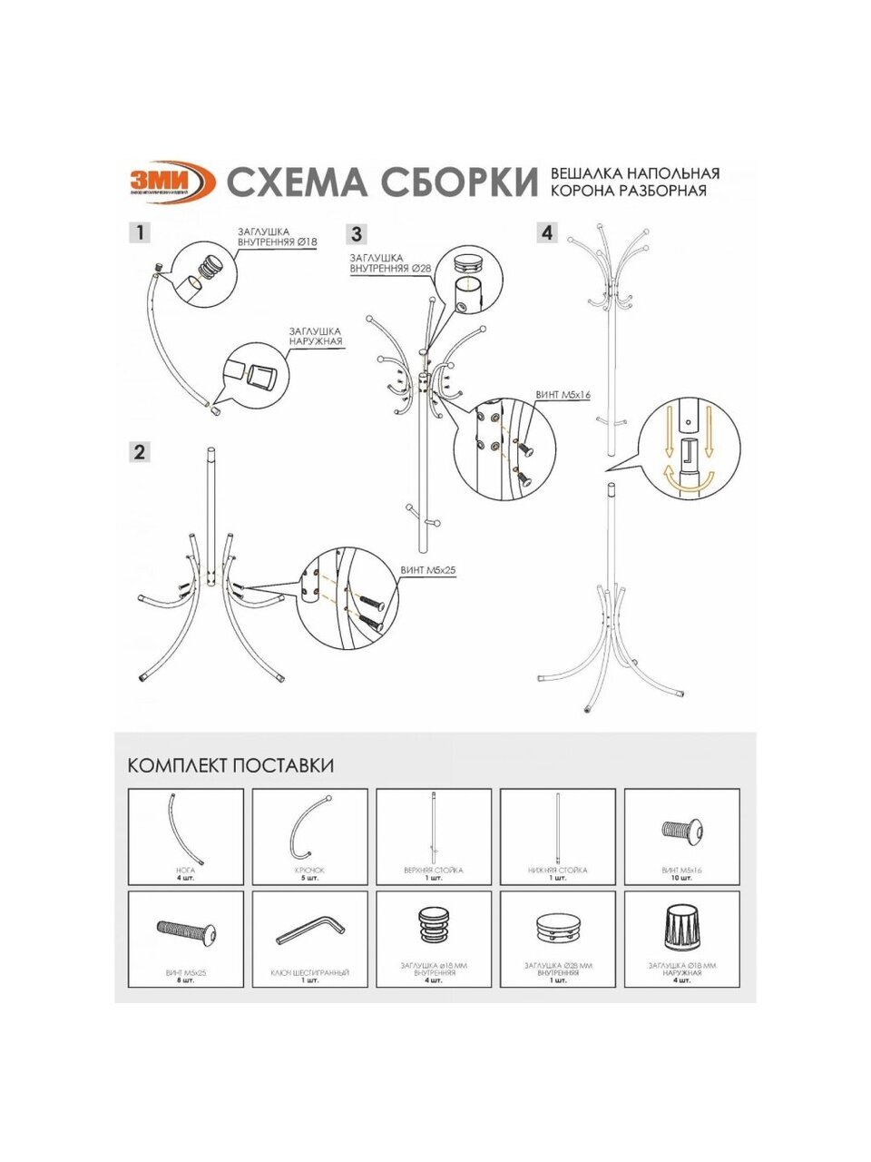Разборная вешалка напольная Корона предназначена для размещения верхней одежды в любых помещениях – дом, офис, общепит и т.п. Разборная конструкция состоит из 2-х сварных частей и стыкуется по центру. Изготовлена из стальной трубы диаметром 10, 16, 30 мм, с полимерно-порошковым покрытием. На верхушках имеются стальные колпачки. Пластиковые заглушки на ножках защищают пол от царапин при перемещении.