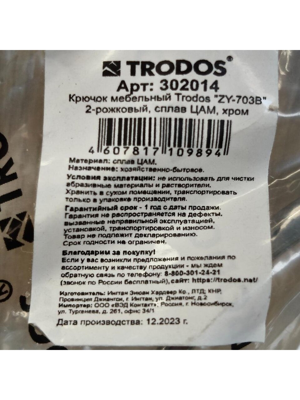 Вы можете приобрести «Крючок средний, Trodos, 04.02.02 Авента, 302014, хром» и другие товары в нашем интернет-магазине в Старом Осколе по низким ценам и с бесплатным самовывозом.
