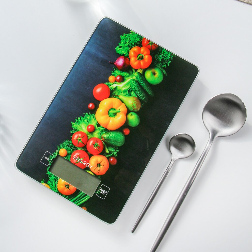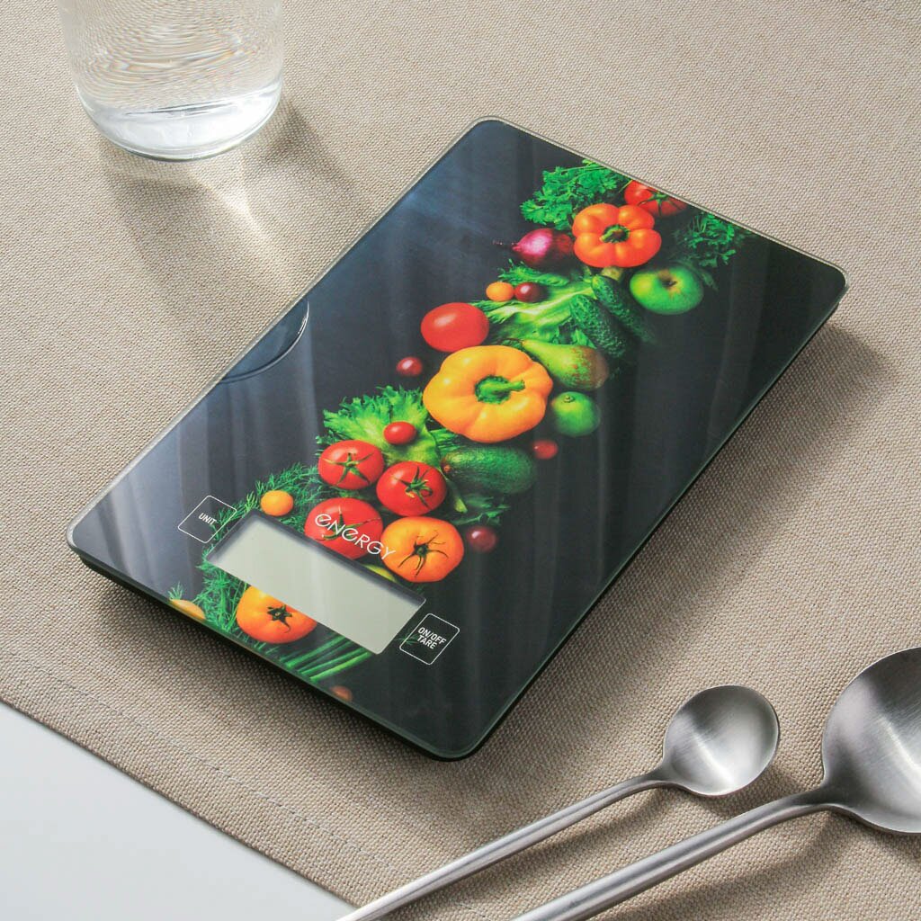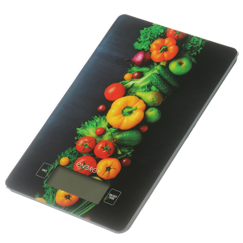 Весы кухонные электронные, стекло, Energy, EN-423 Овощи, платформа, точность 1 г, до 5 кг, LCD-дисплей, 101230
