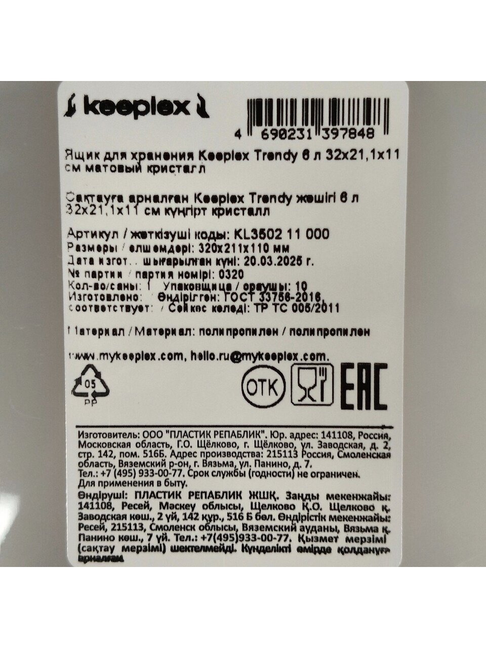 Вы можете приобрести «Ящик для хранения, 6 л, 32х21.1х11 см, с крышкой, матовый кристалл, Keeplex, Trendy, KL350211000» и другие товары в нашем интернет-магазине в Шахтах по низким ценам и с бесплатным самовывозом.