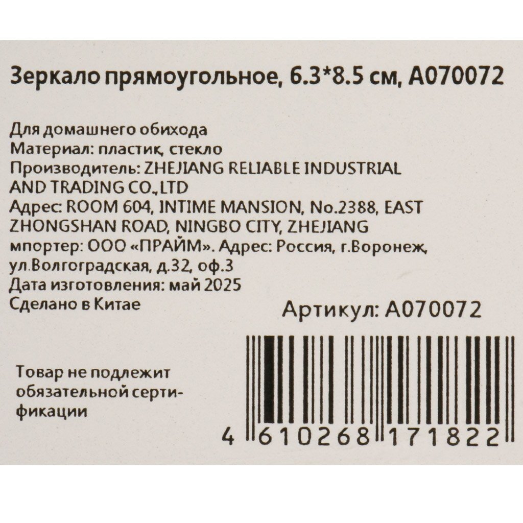 Зеркало настольное, 6.3х8.5 см, прямоуг, A070072